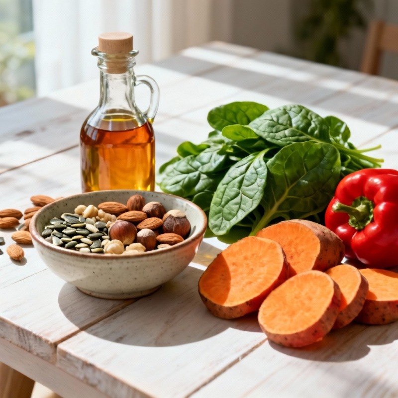 Erőteljes, zsírban oldódó antioxidáns, amely védi a sejteket a szabad gyökök okozta károsodástól (oxidatív stressz). Hozzájárul a bőr nedvességtartalmának megőrzéséhez, és segít megvédeni a bőrt a környezeti ártalmaktól. Támogatja az immunrendszert, jó hatással van a szemre, az idegrendszerre és a szív- és érrendszerre. Segíthet a hormonális egyensúly fenntartásában, csökkenti a PMS és a menopauza tüneteit, valamint hozzájárul a fizikai erőnlét javításához és az izmok egészségéhez.